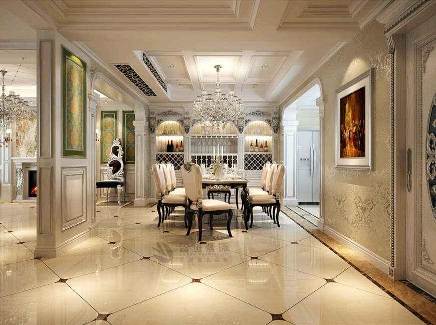 ▲華僑城108坊别墅480平米新(xīn)古典風格劉燕飛主筆(bǐ)——餐廳設計效果圖