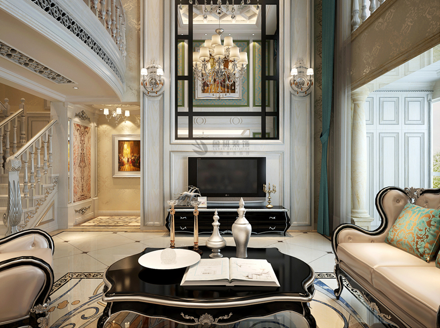 ▲華僑城108坊别墅480平米新(xīn)古典風格劉燕飛主筆(bǐ)——客廳設計效果圖