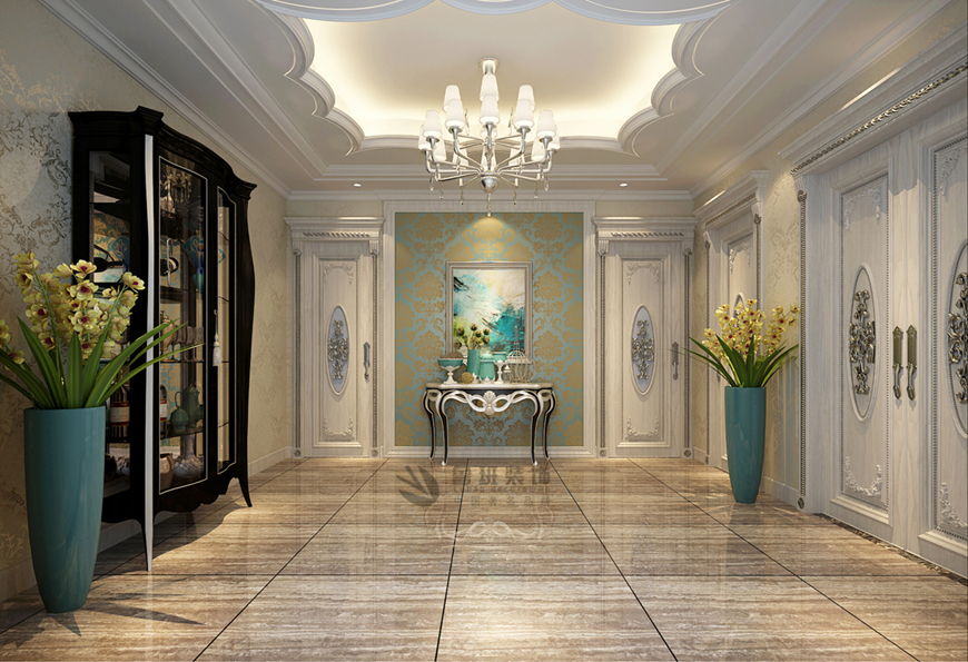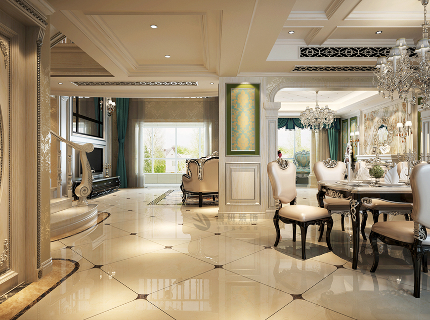 ▲華僑城108坊别墅480平米新(xīn)古典風格劉燕飛主筆(bǐ)——客餐廳過道設計效果圖