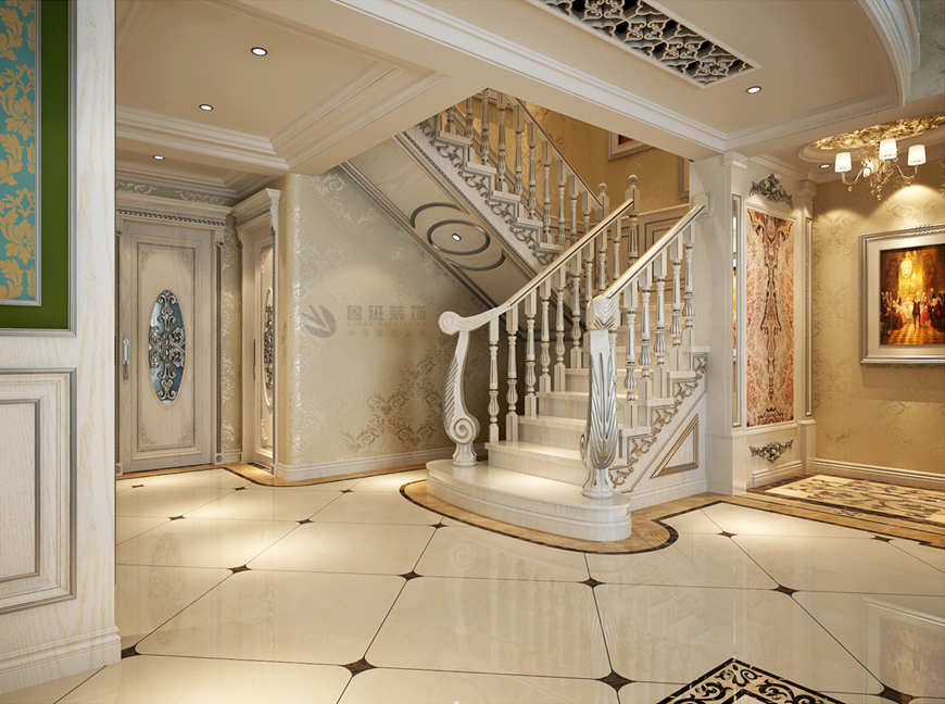 ▲華僑城108坊别墅480平米新(xīn)古典風格劉燕飛主筆(bǐ)——樓梯間設計效果圖