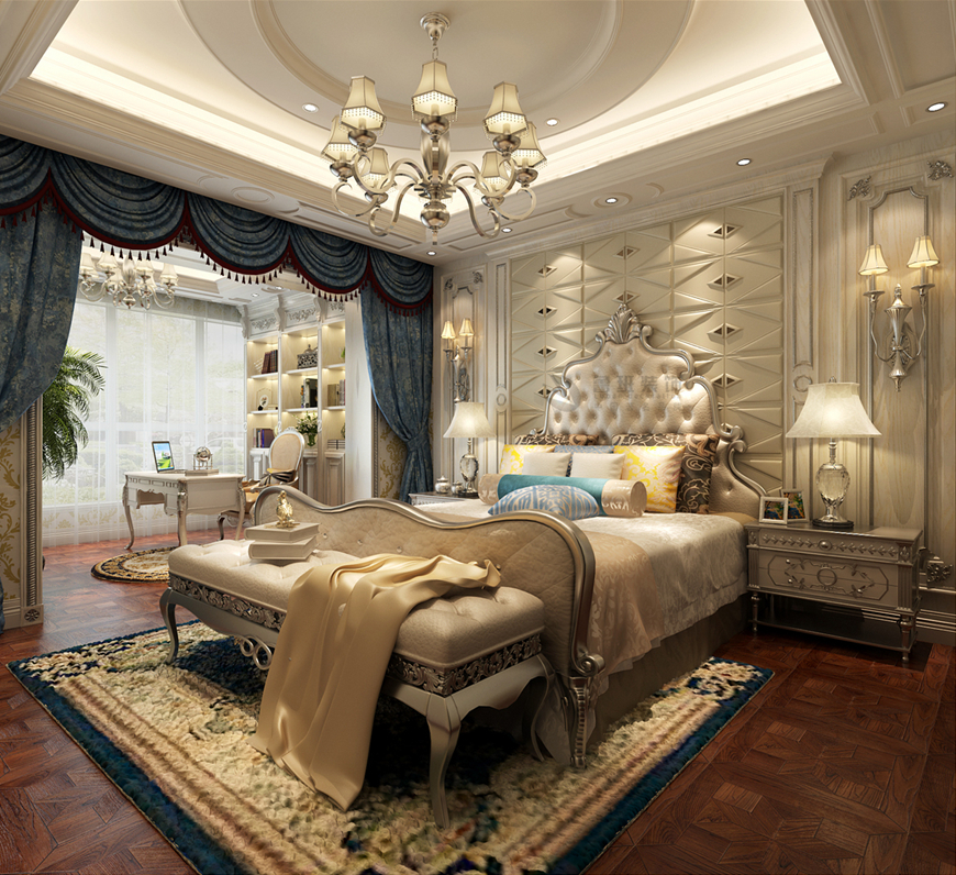 ▲華僑城108坊别墅480平米新(xīn)古典風格劉燕飛主筆(bǐ)——主卧設計效果圖