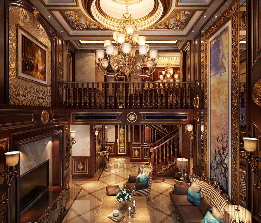 曲江公(gōng)館和園别墅520平米宮廷歐式劉燕飛主筆(bǐ)設計——客廳設計效果圖