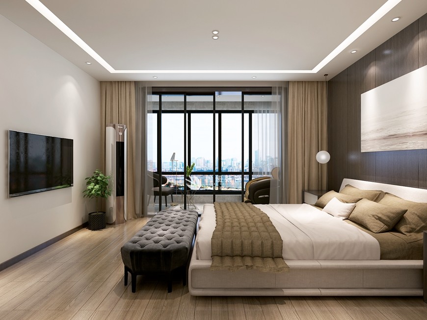 ▲華僑城天鵝堡複式260平米現代簡約王開傑主筆(bǐ)設計——主卧裝(zhuāng)修設計效果圖