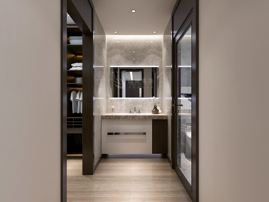 ▲華僑城天鵝堡複式260平米現代簡約王開傑主筆(bǐ)設計——洗漱台設計效果圖