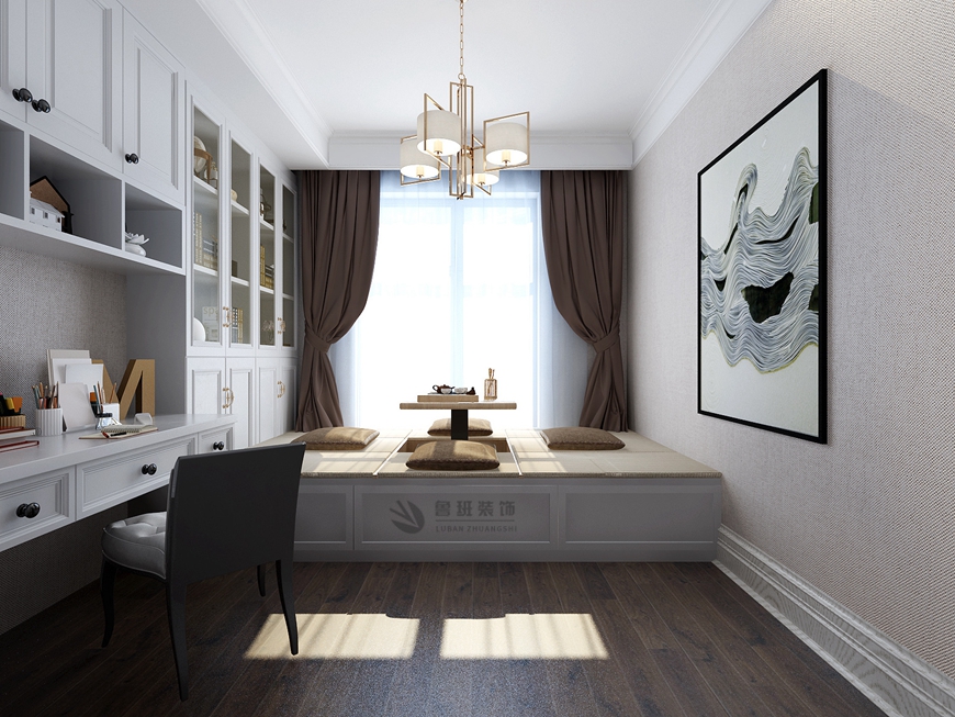 ▲西安(ān)魯班裝(zhuāng)飾龍湖(hú)香醍漫步170平米美式輕奢風設計周倩設計師主筆(bǐ)——書房設計效果圖