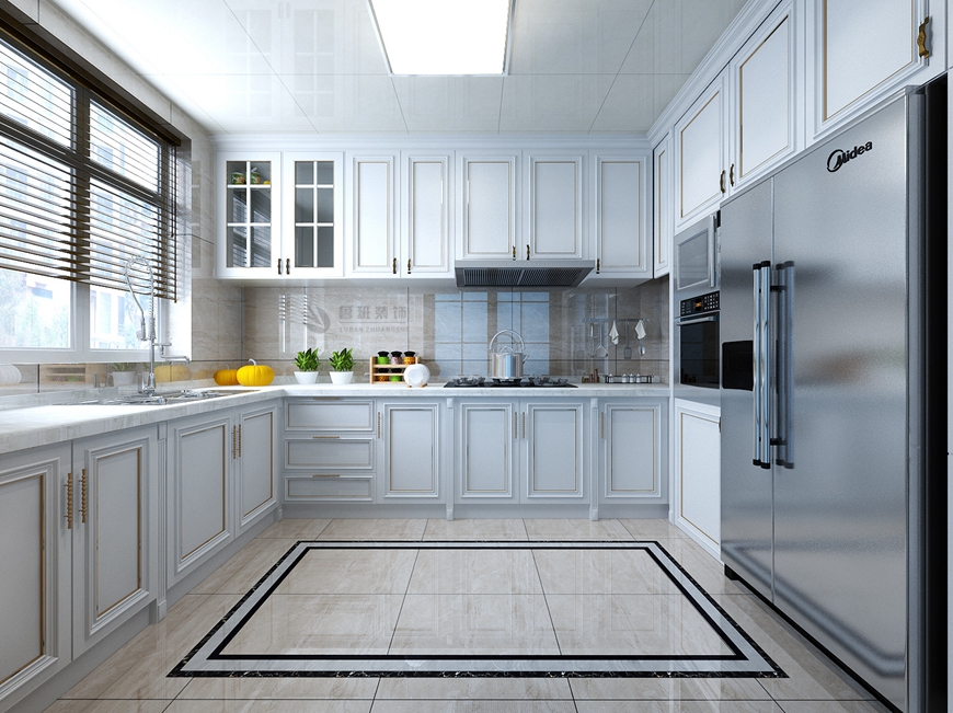 ▲西安(ān)魯班裝(zhuāng)飾龍湖(hú)香醍漫步170平米美式輕奢風設計周倩設計師主筆(bǐ)——廚房設計效果圖