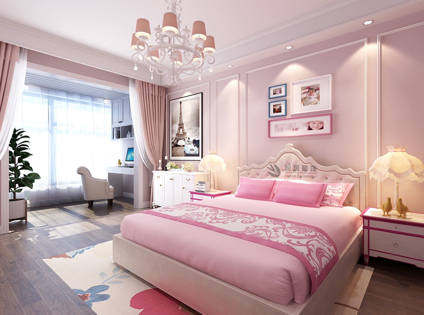 ▲西安(ān)魯班裝(zhuāng)飾龍湖(hú)香醍漫步170平米美式輕奢風設計周倩設計師主筆(bǐ)——女兒房設計效果圖