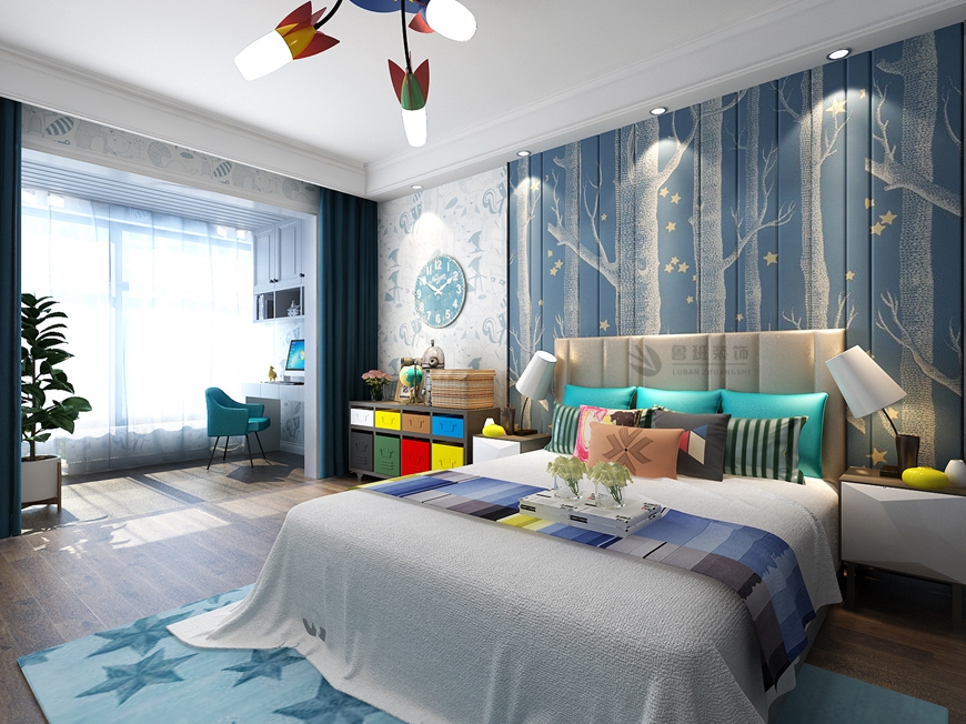 ▲西安(ān)魯班裝(zhuāng)飾龍湖(hú)香醍漫步170平米美式輕奢風設計周倩設計師主筆(bǐ)——男孩房設計效果圖
