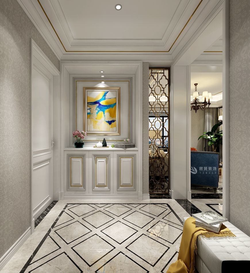 ▲曲江香都三居室145平米簡歐風格設計效果圖黃玉嬌主筆(bǐ)——玄關門廳設計效果圖