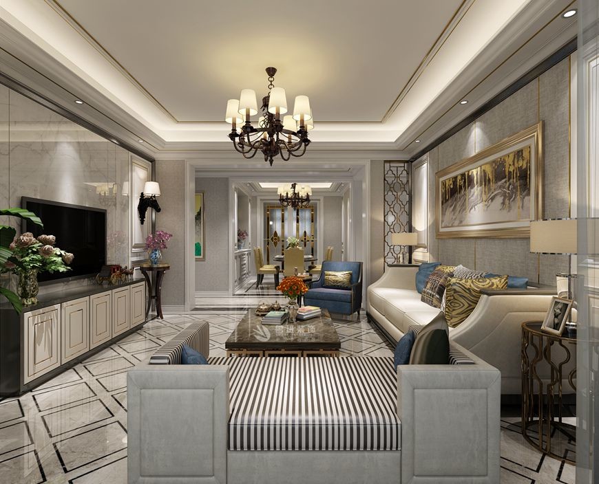 曲江香都三居室145平米簡歐風格設計效果圖黃玉嬌主筆(bǐ)——客廳設計效果圖